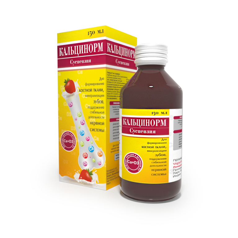 Препарат снижает уровень растворения и увеличивает плотность костной ткани, восполняя недостаток кальция и витамина D3 в организме, регулирует обмен кальция и фосфора в организме. Суспензия Кальцинорм® создан для укрепления костных структур организма, зубов, волос и ногтей, а также для поддержания нормальной работы скелетных мышц и сердца.